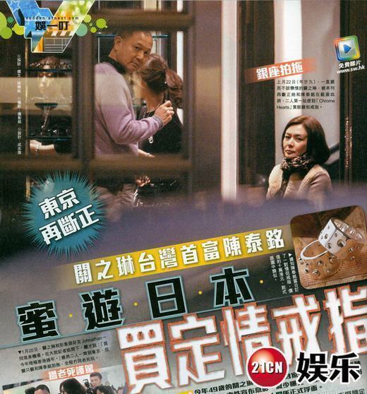 據(jù)臺灣媒體報(bào)道,49歲的關(guān)之琳2007年與國巨董事長陳泰銘傳拍拖后,便宣布息影,2人前年曾被媒體拍到牽手同游巴黎,關(guān)系正式浮上臺面。上月22日又被香港周刊直擊現(xiàn)身東京挑選戒指,陳泰銘更親自開車同進(jìn)出,十分甜蜜。2人并未住進(jìn)酒店,而是選擇位于千代田區(qū)的一般民宅。