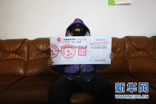 2010年3月31日,50歲神秘男子出現(xiàn)在吉林省體彩管理中心領(lǐng)走巨額支票。20日晚,中國體彩超級大樂透第10031期開獎,全國中出5注一等獎并全部追加投注,中國體彩系統(tǒng)顯示,這張彩票來自吉林省長春市第02277號體育彩票投注站。