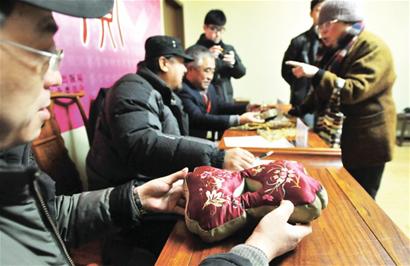 民國時期街頭電線桿上的廣告畫、解放初期陶土制作的饅頭磕子、可以讓耳朵舒展著睡覺的耳枕……這些民間早年常見的老物件,與象牙材質的象棋和鎏金銅佛像一并入選 “青島市十大民間藝術藏品”。昨日,青島民俗館舉辦“鑒寶會”,近百名市民帶著家中的210多件“寶貝”來請民俗專家鑒定,經(jīng)過一上午的鑒定評選,10件具有青島本地民俗特色的民間藝術品被評為十大民間藝術藏品。 現(xiàn)場 排隊請專家“長眼” “我這個紫檀木筆筒是我爺爺傳下來的,你給看看是什么年代的?!鄙衔?時許,記者在海云廣場的青島民俗館看到,眾多提著大包小包的市民圍在民俗館門口,排隊等待進入鑒定現(xiàn)場。原來,這些市民包里都裝著家傳的 “寶貝”。因為對這些 “寶貝”不摸行情,“寶貝”的主人想請“鑒寶會”民俗專家?guī)兔o “長眼”。45歲的孫先生帶著一個黑褐色的木質筆筒走進鑒定現(xiàn)場,請專家給看看是什么年代的。民俗專家拿起筆筒,里外仔細查看了一番表示,從筆筒外層“包裝”來看,應該是民國初的物品,但由于筆筒上沒有任何花紋和字跡,從民間藝術品角度來說沒有太大價值。 縱深 藝術藏品突出民俗 記者在現(xiàn)場看到,前來鑒定的藝術藏品五花八門:老本的《康熙字典》、陳舊的玉鐲、泛油的老皮影、生銹的燭臺、釉色陳舊的瓷器……甚至連建國前用來自制卷煙的木質卷煙器都出現(xiàn)在鑒定現(xiàn)場?!斑@些老百姓日常使用的老物件現(xiàn)在已經(jīng)很少見了,我們這次舉行的民間藝術藏品鑒定,重點是在民俗使用器具上?!鄙綎|民俗學會專家魯漢告訴記者,送來鑒定的藏品不乏制作精良的玉器、瓷器和古字畫,但為突出民俗特點,沒有青島地區(qū)民俗特征的藏品都沒能入選十大民間藝術藏品。市民戈女士帶來的一對繡花枕頭吸引了專家的目光,這對枕頭的特殊之處在于枕頭中間有一個小孔,由于年代較久,枕頭邊上已撒漏出里面的麥糠。魯漢告訴記者,這種中間帶有空洞的枕頭是膠東地區(qū)早期的“耳枕”,是為了防止孩子側臉睡覺時壓著耳朵,中間的空洞就是讓耳朵舒展開的地方。 進展 饅頭磕子入選“十大” 從萊西趕來“鑒寶”的劉女士抱出一個半米多長的饅頭磕子,與常見木質饅頭磕子不同,這個刻有鯉魚花紋的饅頭磕子重達20多斤,是用陶土燒制而成?!拔依牙呀o了我媽,我媽又給了我?!眲⑴扛嬖V記者,這個陶土的饅頭磕子以前在過年的時候還做過饅頭,現(xiàn)在過年不蒸饅頭了,這個磕子就扔到了床底下。這個不算起眼的饅頭磕子立刻引起民俗專家的注意。魯漢告訴記者,饅頭磕子是典型的膠東民俗物品,而這種陶制磕子是萊西民窯燒制,萊西類似燒制磕子的窯口建國后逐漸絕跡。“和其他銅器玉器相比,這個饅頭磕子的市場價值可能微不足道,但它代表了一個民俗時期的特征?!弊罱K,3名民俗專家全票通過,這個饅頭磕子與清代鎏金銅佛像、象牙材質象棋、刺繡耳枕、盤金綠桌帷等10件藏品一同被評為“青島市十大民間藝術藏品”。據(jù)介紹,青島民俗館近期將為這些入選藏品提供展位,讓市民近距離觀賞這些“老青島”用過的老物件。(記者 趙健鵬 攝影報道) 十大民間藝術藏品 ????清代鎏金銅佛像 ????盤金綠桌帷 ????象牙象棋 ????刺繡耳枕 ????清代寫真畫像 ????青島成豐德廣告畫 ????清玻璃料琺瑯彩首飾盒 ????九拼胭脂盒 ????陶制魚形磕子 ????民國琺瑯火鍋 |