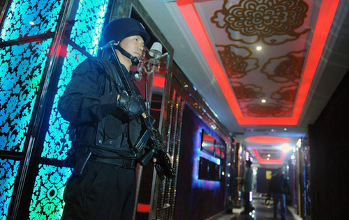 當(dāng)晚10時(shí)30分,佛山南海大瀝警方出動(dòng)近百名警力對(duì)一名叫“百樂(lè)門(mén)”的KTV進(jìn)行清查,荷槍實(shí)彈的特警封鎖門(mén)口,不許人員進(jìn)出。KTV內(nèi)的所有包廂娛樂(lè)活動(dòng)被暫停,民警逐一包房清查是否存在涉嫌吸毒、賣(mài)淫嫖娼等行為。行動(dòng)中,當(dāng)場(chǎng)查獲10名(6男4女)涉嫌吸毒的人員。