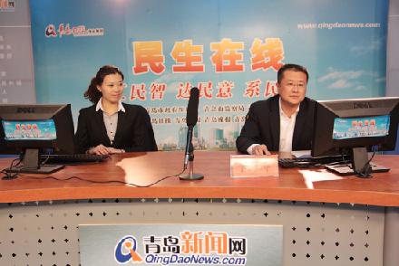 市南區(qū)區(qū)委常委、副區(qū)長李海濤(右)與網(wǎng)民在線交流 (周琦 攝)