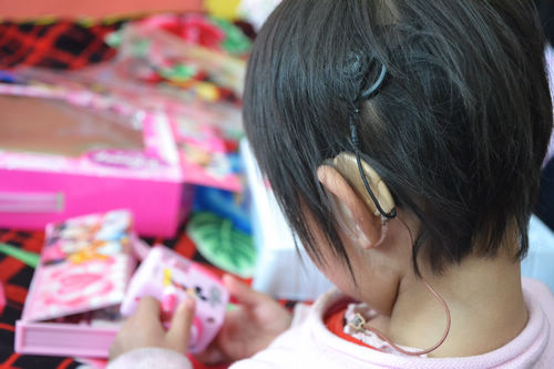 左耳上的助聽(tīng)設(shè)備將陪伴他們一生