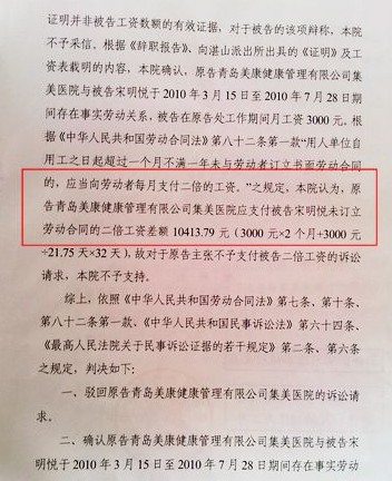 ![]() 《判決書》部分內(nèi)容 ????2010年末,“人造美女”宋明悅與老東家集美整形關(guān)于10萬元代言費歸屬一事鬧得沸沸揚揚。據(jù)悉,事件發(fā)生后,宋明悅當(dāng)即委托了律師將集美整形告上了法庭,不過近日她透露,首場勞動合同官司進展十分不順,雖然法院判決她勝訴,但是集美整形當(dāng)起了“老賴”,拖延半年多時間未支付給她一分錢。 ????“人造美女”曝集美整形實為“老賴”,法院判決半年多拒不執(zhí)行 ????宋明悅告訴記者,集美整形除了未支付給她10萬元“中國標(biāo)準美女臉”冠軍獎金外,在她任職醫(yī)院企劃部4個多月的時間內(nèi),也未與她簽訂勞動合同。因此,她委托律師準備起訴后,律師建議她先從較簡單的勞動關(guān)系官司打起。 ????于是,2011年初,她首先以集美整形未與她簽訂勞動合同為由申請了勞動仲裁。宋明悅勝訴后,集美整形方面不服仲裁裁決書,馬上在當(dāng)年2月向市南區(qū)人民法院提起了訴訟。經(jīng)過近半年的訴訟程序,2011年8月1日,法院駁回了集美整形的訴訟請求,確認了集美整形與宋明悅在2010年3月5日至2010年7月28日期間存在事實勞動關(guān)系,判決集美整形在十日內(nèi)支付宋明悅未訂立勞動合同的二倍工資差額10413.79元。 ????雖然勝訴,但是宋明悅并沒有感到高興。因為截止到現(xiàn)在,集美整形方面仍未執(zhí)行法院的判決。“請律師,從海南往返青島的路費,辦理一些手續(xù)……花的錢已經(jīng)超過他們給我的了。”宋明悅表示,她在這個案子上至少花費了兩萬元,之所以仍在堅持,就是為了給自己要一個說法,也是為了后面打10萬元獎金的官司做準備。 ????集美整形回應(yīng):未執(zhí)行判決是因為聯(lián)系不上當(dāng)事人 ????通過瀏覽宋明悅方面提供的《判決書》記者發(fā)現(xiàn),上面明確提到“如果原告(集美整形)未按本判決書指定的期間履行給付金錢義務(wù),應(yīng)當(dāng)按照《中華人民共和國民事訴訟法》第二百二十九條之規(guī)定,加倍支付延遲履行期間的債務(wù)利息?!睆?011年8月1日下發(fā)《判決書》至今已經(jīng)過去了半年多時間,集美整形方面為什么遲遲不執(zhí)行法院判決呢? ????今天下午,記者聯(lián)系到了案件訴訟過程中集美整形方面的委托代理人集美醫(yī)院辦公室主任孟倩。 ????“還沒給她是因為一直沒找到她人,她沒跟我們聯(lián)系過?!边@位孟主任表示,這個錢肯定會支付給宋明悅,如果現(xiàn)在能取得聯(lián)系,會執(zhí)行法院的判決。 ????“找不到我?這怎么可能?”對于集美方面的解釋,宋明悅并不認可,她表示法院裁決后,自己的律師曾多次聯(lián)系過集美整形方面,但溝通都以失敗告終。 ????律師支招,可向法院申請強制執(zhí)行 ????關(guān)于此事,記者也咨詢了山東海暉律師事務(wù)所的李令昌律師。他表示,法院判決后,若義務(wù)人一方拒不執(zhí)行法院判決,權(quán)利人可申請法院強制執(zhí)行。也就是說,如果集美整形方面遲遲不執(zhí)行法院判決,那宋明悅一方可以向法院申請強制執(zhí)行,通過提供被執(zhí)行人相關(guān)財產(chǎn)線索,由法院通過查封、扣押、拍賣被執(zhí)行人財產(chǎn)等進行強制執(zhí)行。(記者 王震遠) |