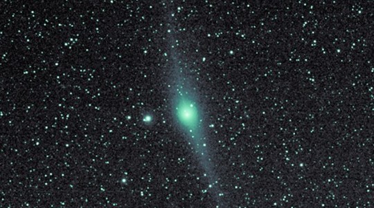 ![]() 2月19日凌晨,天文愛好者在嶗山拍攝到的雙尾彗星。 ????位于市南區(qū)觀象山山頂?shù)那鄭u觀象臺由德國人始建于1898年。1998年,建臺100周年時,"中國光學之父 "王大珩先生蒞臨青島,并題詞:"青島風光,觀象有方。百年業(yè)績,貴在經(jīng)常。日月星辰,窺成壯觀。太陽黑子,描記隱現(xiàn)……承前啟后,觀象其昌。" 不過也是從1998年起,青島市區(qū)光污染以及空氣污染導致大氣能見度降低,觀象臺無法進行深度天體觀測,只能開展太陽和月亮的觀測活動。 ????想在城市里觀星已經(jīng)是一場奢望!位于觀象山的青島觀象臺自1998年起就無法再進行深度天體觀測;如今仰望星空,運氣好的話,也僅能看到20多顆星星。受光污染和空氣污染等原因的影響,眾多天文愛好者不得不將觀測的地點移向嶗山,或者更偏遠的地方。2月18日晚,記者跟隨“追星人”來到嶗山享受一場星空視覺盛宴,也欣賞到難得一見的雙尾彗星。 ????深夜登嶗山,賞杰拉德彗星 ????19日凌晨,距離地球1.3個天文單位(1個天文單位=1.5億公里)的杰拉德大彗星,拖著兩條 180°的彗尾,以熒綠的夢幻色彩,出現(xiàn)在北方天空的天龍星座內(nèi)。宇宙中的彗星有很多,但能夠進入人們視野的卻非常罕見,平均每百年只有 5顆左右,拖著兩條彗尾的彗星更是難得一見。 ????為觀測到這顆美麗的彗星,青島觀象臺組織了天文愛好者前往嶗山觀測。2月18日晚10時30分,記者跟隨觀測團從市區(qū)出發(fā),行至嶗山區(qū)青山社區(qū)里的一個海邊,東向視野很開闊,后面還有一座大山可以幫忙遮擋寒風,一行人就在這里安營扎寨。時間接近12時,彗星已經(jīng)從地平線升起,但高度很低,不太適合觀測,大家忙著架設觀測器材。 ????記者插不上手,就坐在一旁欣賞星空。對城市人而言,如此純美的星空已經(jīng)久違了。天空中繁星滿天,星光熠熠,每一顆星星都似在調(diào)皮地眨著眼睛,盯得時間久了,就感覺這星星離自己越來越近,似乎觸手可得。 ????半個多小時后,設備架設完成,在青島觀象臺專家房崑的指導下,通過望遠鏡,能夠看到一顆大彗星靜靜地浮在群星之中,兩條彗尾散發(fā)著迷人的光芒。凌晨1時30分,彗星達到可拍攝的高度,房崑使用有線遠程控制來拍攝彗星,計劃是拍攝1個多小時的彗星??芍型静恢钦l踢掉了USB連接線,只得重新調(diào)試設備,這一腳不當緊,一下子耽誤了半個多小時,還好有其他觀測者正在拍攝。 ????房崑向大家介紹說:“彗星是由塵埃和冰組成的,當它接近太陽時,就會融化形成彗尾。這兩條彗尾一條是由塵埃和石塊組成的塵埃尾,另一條是由太陽風中帶電離子吹出來的離子尾?!辈贿^,通過不斷拍攝,彗尾越來越清晰地展現(xiàn)出來,房崑提出了自己的大膽猜想,認為這顆彗星可能是拖著扇形的尾巴,看到的兩條彗尾可能是扇形的兩個邊緣?!斑@個想法現(xiàn)實不現(xiàn)實,還不敢說,要回去再研究一下,不過我個人認為完全有可能”。 ??????忙時不覺冷,咖啡卻結(jié)了冰 ????龐偉是第一次參加戶外天文觀測活動 ,他是中鐵集裝箱青島營業(yè)部的工作人員,原來對天文的了解一直停留在書本上。龐偉帶去了自己新買的信達150口徑的反射望遠鏡,由于對設備還不熟,也一直在忙著調(diào)試。 ????“這臺望遠鏡都被業(yè)內(nèi)人士昵稱為‘小黑’,據(jù)說性能很好,我花了2500元買的,可還沒真正用于觀星?!饼媯ヒ恢痹诿?,想通過自己的望遠鏡找到彗星,可沒有專業(yè)的指導,想在茫茫星空里找到一顆小小的彗星,可不是件易事。最終,他也沒能實現(xiàn),只好把這次觀測活動當成熟悉星座的練習。“忙活了一夜,中間就上車迷糊了40來分鐘,也沒覺得冷,可后來一看自己沖的咖啡都結(jié)了冰”。 ????對于剛剛?cè)胄械姆菍I(yè)人士來說,夜上嶗山觀星是一件很浪漫的事。第一次參與這種野外觀測的朱珠就準備了一大鍋意大利面,可真正開始觀測,彗星、流星、人造衛(wèi)星、銥星等接連出現(xiàn),星空的美麗讓大家應接不暇,最多只會倒杯熱水或沖杯速溶咖啡來暖暖手,一大鍋意大利面早已被拋在腦后。 ?????調(diào)查 ????耗財耗力,天文攝影全城僅三人 ????在青島,追星仍是小眾活動?;蛟S是被天空擋住了對星空的幻想,也或許是被專業(yè)的器械嚇退了。每次的星空觀測,房崑都會用相機記錄下來。這一張張精美的星空圖,是耗費財力、精力的結(jié)果。對于一般人來說,玩天文攝影可不是一件易事。房崑算了一下,他的整套天文攝影器材達10萬余元。在青島,真正玩天文攝影的人,加上他也就三個人。 ????要追星,得身體素質(zhì)好,熬夜很辛苦,特別是在極冷、極熱的情況下。房崑說,夜越深,觀星也越美。記得有一次去觀流星雨,凌晨一點,非常壯觀的景象,可冷得要命,大家裹著軍大衣守在山坡上,沒有一個人愿意錯失這種美景。而他還要進行拍攝,要把握好角度和時機,才能抓拍到最美的流星,有時一守就是兩三個小時。 ????雙重污染,只能看到20多顆星星 ????位于觀象山頂?shù)挠^象臺已經(jīng)有 100多年的歷史,一直是最佳的觀測位置??蓮?998年起,觀象臺就無法進行深度天體觀測,拍攝的照片基本上是廢的,只能開展太陽和月亮的觀測活動 。想觀測星空,天文專家們只能盡力躲開城市燈光,到更遠的郊區(qū)去。 ????在越來越多燈光的照射下,城市夜空日益明亮,星空從人們的視野中消失??諝馕廴竞凸馕廴荆芍^星空觀測之