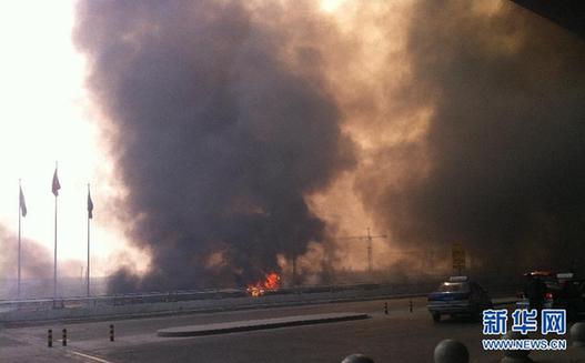 2月21日,沈陽市桃仙國(guó)際機(jī)場(chǎng)火災(zāi)現(xiàn)場(chǎng)濃煙滾滾(手機(jī)拍攝)。