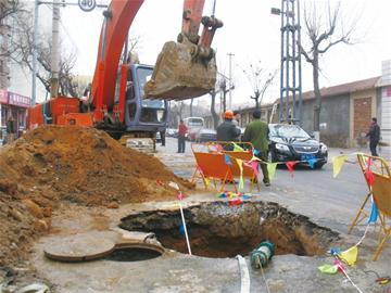 早報訊 一輛大車疾馳而過,開平路橋邊一處古力井旁路面突然出現(xiàn)一個大坑,隨后駛來的轎車司機發(fā)現(xiàn)后猛踩剎車,車輪險些陷進坑內(nèi)。住在附近的管大爺和幾名鄰居發(fā)現(xiàn)險情,自發(fā)搬來石頭等物,守在突然出現(xiàn)的大坑旁邊,向過往車輛示警。前天晚上8時30分左右,記者聞訊趕到開平路47號附近,聯(lián)系自來水公司、燃氣公司和排水管理處等多家單位前來查看,但暫時無法確定路面塌陷的責任。 柏油路上突現(xiàn)大坑 “這條路上之前就有個小裂紋,后來隨著大車來往碾壓,這個裂紋越來越大,但沒想到昨天一輛大車駛過,路面竟突然塌陷了這么大一塊?!庇浾呗動嵹s到現(xiàn)場時,市民王先生告訴記者,當時有一輛轎車跟著大車駛來,幸好司機車速不快,還開著大燈,及時發(fā)現(xiàn)了路面上有塌陷,司機猛踩剎車,車在坑前面兩米處堪堪停下,下車后轎車司機看著深約3米的大坑直呼危險。 好心人坑邊示警 記者在現(xiàn)場看到,這處大坑坑口直徑約半米,坑深足有3米左右,坑周圍10多平方米的范圍內(nèi),柏油路面踩上去都有些發(fā)暄,記者從坑口看過去,發(fā)現(xiàn)周邊的路面下面已經(jīng)沒有路基。住在附近的管大爺和幾名鄰居發(fā)現(xiàn)險情后,自發(fā)從周圍搬來三四塊大石頭,圍在塌陷路面周圍,管大爺?shù)热诉€是不放心,干脆拿著手電筒站在坑口附近,向過往的車輛揮手示警。 難確定塌陷責任 記者就此事聯(lián)系了市政公用局12319熱線電話,但因為此處路面下方埋有自來水、天然氣和排水管道等多條管道,工作人員一時也無法確定路面塌陷的原因。記者在現(xiàn)場看到,自來水公司和燃氣公司的搶修人員趕到現(xiàn)場,查看塌陷路面后離開。記者在塌陷路面周圍發(fā)現(xiàn)一處古力,井蓋上寫著“污”字樣,排水管理處的工作人員到現(xiàn)場后,仍然無法確定責任歸屬,在坑口設置了黃色示警的鐵柵欄后離開。 市政已經(jīng)著手修繕 昨天下午1時,記者再次趕到開平路,排水管理處的工作人員稱,此處路段建設后沒有移交,現(xiàn)在仍由市政部門負責,他們已經(jīng)聯(lián)系市政部門前去處理。記者在現(xiàn)場看到,一隊施工人員已經(jīng)趕到現(xiàn)場,并調(diào)來兩輛挖掘機將坑口挖開,記者看到塌陷的大坑里的基土已經(jīng)被沖走,坑邊是一處古力井,井底仍然有綠色的污水流出,施工人員使用水泵將污水抽到旁邊的河道里,隨即對古力井進行修正。據(jù)一名施工人員稱,可能是古力井漏水,將路面下方的基土沖走,才會造成路面塌陷。(記者 黃飛 攝影報道) |