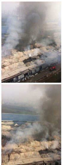 12點半,仍能看到明火,挖掘機也已經(jīng)進場清理。 ????四川在線消息 今(23)日凌晨,雙流文星鎮(zhèn)西航港的飛陽物流基地發(fā)生火災(zāi),目前仍未撲滅。 ????據(jù)現(xiàn)場目擊者楊先生介紹,該物流基地有近5000平方米,起火時間大約為凌晨1點,起火時火勢十分兇險,目前他暫未看到人員傷亡。 ????據(jù)飛揚倉儲物流基地工作人員魏先生介紹,基地的總面積有幾萬平方米,此次著火的是其中一個庫房的一部分,面積為幾千平方米,目前并無人員傷亡。據(jù)他了解,倉庫內(nèi)的貨物多為食品和家電,損失暫時很難估計。但他介紹,倉庫有很完善的保險,因此商家都可得到一定的賠付。而這場火災(zāi)對整個物流基地的影響也不大,明天基地就將正常營業(yè)。 |