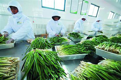 ![]() ????靠山吃山,靠水吃水。南村鎮(zhèn)一共9萬多畝田地,就有8萬多畝種的是蔬菜。如今已經(jīng)注冊(cè)了“姜家埠”牌、“綠崖”牌和“洪蘭菠菜”等商標(biāo)。于慈棟告訴記者,目前南村鎮(zhèn)52個(gè)村莊,就有47個(gè)村從事蔬菜生產(chǎn)?,F(xiàn)在僅南村鎮(zhèn)蔬菜批發(fā)市場(chǎng)年交易量就達(dá)到了18.5億公斤,年交易額22億元。市場(chǎng)輻射帶動(dòng)大沽河流域蔬菜面積60余萬畝,帶動(dòng)了周邊50公里以內(nèi)100多萬農(nóng)民種菜賣菜,產(chǎn)品遠(yuǎn)銷北京、上海、廣州、深圳、大連等20多個(gè)大中城市,出口日本、韓國(guó)等十多個(gè)國(guó)家和地區(qū)。記者了解到,在大沽河沿岸,還有像萊西店埠日莊蔬菜批發(fā)市場(chǎng),即墨移風(fēng)店蔬菜批發(fā)市場(chǎng)等,在全國(guó)都叫得響。此外,萊西山后韭菜、平度大姜和洋芋、郭莊辣椒、南村菜鄉(xiāng)和膠州大白菜等,都是全國(guó)響當(dāng)當(dāng)?shù)摹懊撇恕薄?/p> ????昨天上午,記者在萊西孫受鎮(zhèn)董家山后村看到了一個(gè)數(shù)千畝的韭菜基地。青島豐杰公司的張經(jīng)理告訴記者,以前,山后韭菜零零星星不成規(guī)模,產(chǎn)品受到制約銷不出去。去年他們成立了有機(jī)韭菜公司,韭菜經(jīng)過幾十道工序,經(jīng)過包裝變成了品牌韭菜。如今山后韭專門注冊(cè)了“翡翠”商標(biāo),一斤賣到了68元。 ????記者沿大沽河兩岸采訪數(shù)日,從萊西產(chǎn)芝水庫(kù)、到平度仁兆和南村;從即墨移風(fēng)店,到膠州和城陽區(qū),沿途眾多的名牌蔬菜已經(jīng)是全國(guó)飄香。萊西山后韭菜、平度大姜和洋芋、郭莊辣椒和膠州大白菜等,都是全國(guó)響當(dāng)當(dāng)?shù)摹懊撇恕?。記者沿岸看到,大沽河兩岸到處掛著農(nóng)業(yè)合作社的牌子,眾多的品牌菜從這里加工后走向全國(guó)各地,一條以沽河品牌菜為中心的農(nóng)業(yè)產(chǎn)業(yè)鏈條,正在兩岸形成。 ????大沽河沿岸打造現(xiàn)代農(nóng)業(yè)“長(zhǎng)廊”