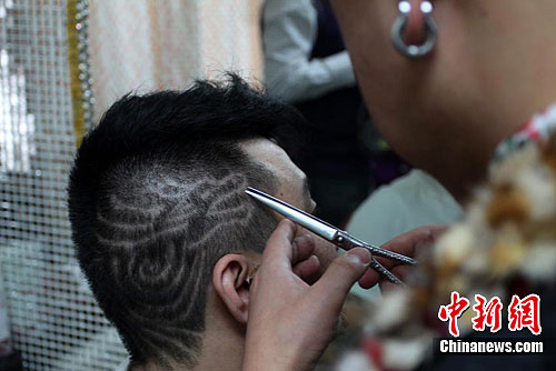 記者22日在長春一些理發(fā)店發(fā)現(xiàn),有許多市民對“龍發(fā)型”情有獨衷,要求理發(fā)師在自己的頭上修飾出“龍”的文字或圖案,極富個性。