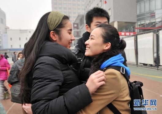 2月22日,進入三試的考生相擁慶祝。