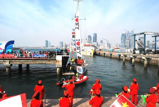 這是青島這座城市第四次迎來克利伯船隊,岸上等候多時的人們對歡迎水手顯然駕輕就熟。激情開啟的香檳酒,中國特色的舞獅表演,美味的冰糖葫蘆,歡迎儀式簡約而隆重。