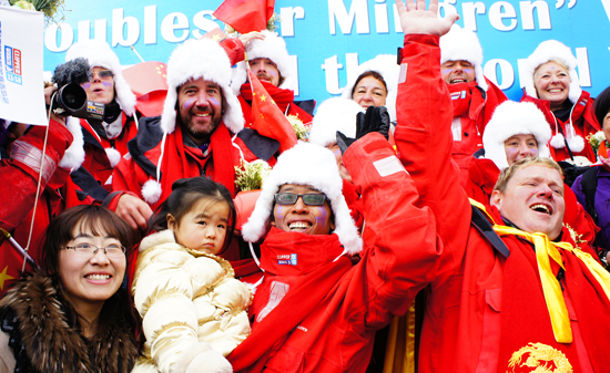 曲志國和妻子女兒團聚,2歲的小姑娘貌似還不理解自己的父親做了一件多么偉大的事情,表情淡定