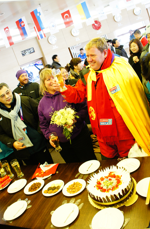 船長今天當(dāng)“壽星”,與船員們一起慶祝生日