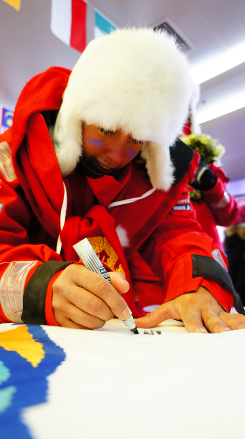 曲志國始終沒有放下自己的寶貝閨女,簽到也要抱著