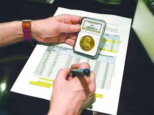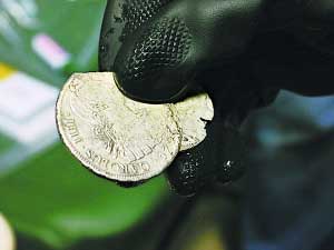2月23日,鑒定專家在美國佛羅里達州鑒定沉船中的財寶。