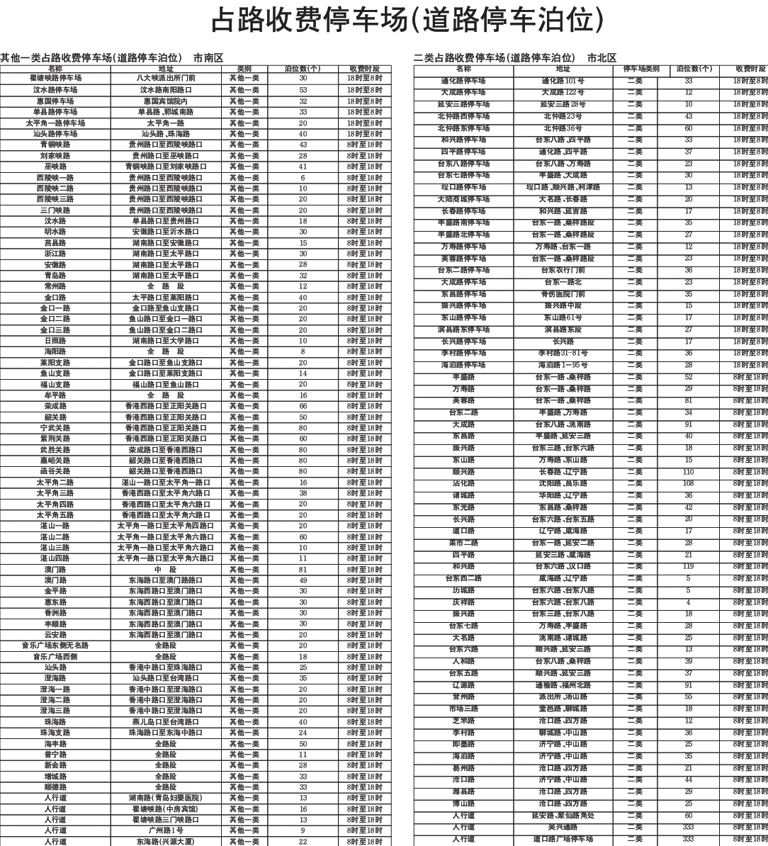 占路收費(fèi)停車場(道路停車泊位)收費(fèi)標(biāo)準(zhǔn)(二)