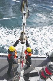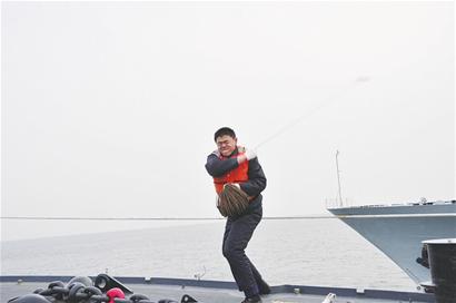![]() 水兵進(jìn)行撇纜訓(xùn)練。