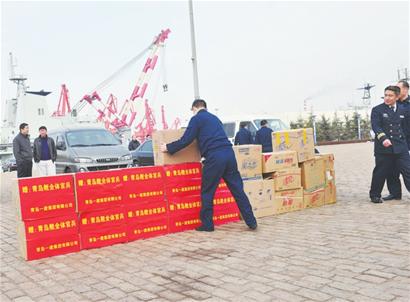 官兵搬運(yùn)慰問品。