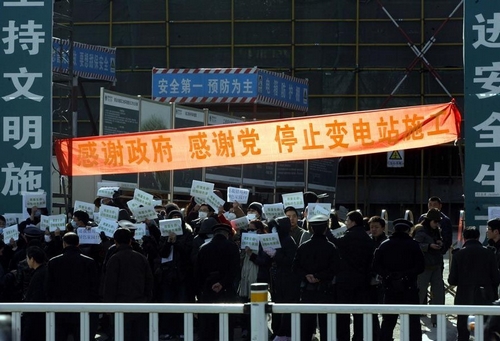經(jīng)過1個(gè)小時(shí)的交涉,5名小區(qū)業(yè)主自愿成為代表與青島市供電局、規(guī)劃局、環(huán)保局、萬科藍(lán)山負(fù)責(zé)人、信訪局五個(gè)部門的工作人員進(jìn)行交涉。
