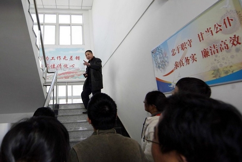 2月28日下午,山東青島遼源路街道辦事處內(nèi),青島信訪局某處長要求前來傾聽官方答復(fù)的100余名業(yè)主按照《信訪條例》選出5名代表進(jìn)行對(duì)話。