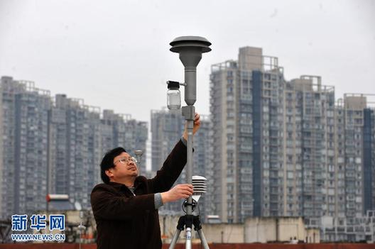 3月1日,杭州市環(huán)境監(jiān)測站的工作人員在調(diào)整PM2.5監(jiān)測設(shè)備。(新華社記者 黃宗治 攝)