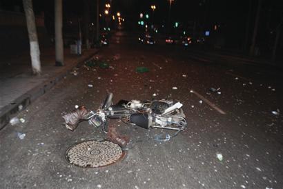 市南交警大隊(duì)事故科接到報(bào)警后迅速趕到現(xiàn)場(chǎng)勘察,山東路與江西路路口以西100米處,一輛黑色摩托車倒在東向西車道上,現(xiàn)場(chǎng)一片狼藉,摩托車被撞擊散落的零件及車上的奶瓶碎渣綿延了50余米,摩托車在地上的劃痕有19.7米。肇事車輛已經(jīng)逃離,現(xiàn)場(chǎng)沒有剎車痕跡。