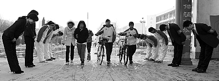 ????“現(xiàn)在孩子一回到家,首先向我們問安。就是走到大街上,見到老師也彎腰行鞠躬禮。”昨日上午,漯河市第15中學(xué)的幾名學(xué)生家長告訴記者,“孩子的學(xué)習(xí)態(tài)度也變化很大,他們感覺如果不好好學(xué)習(xí),就是不忠不孝?!?/p> ????3年前,由郊區(qū)學(xué)校升格為市直中學(xué)的15中,是漯河教育界的“名?!保簩W(xué)生“出口成臟”,經(jīng)常打架斗毆;教師也覺得和其他中學(xué)相比,有點(diǎn)灰頭土臉?,F(xiàn)在,該校的文明禮儀教育,成為全市各校的典范。這一巨變,源自“另類”校長王鄭生的“別樣”教育。 ????師生相遇鞠躬問好 ????【目擊】 ????“同學(xué)們?cè)缟虾?!”“老師早上好!”昨日上?1時(shí)50分,放學(xué)鈴聲響起,記者在15中校門口看到:16名老師和學(xué)生,分兩排站立,每當(dāng)有師生途經(jīng)此處時(shí),便不厭其煩地90度鞠躬問好,而受禮后的師生,也會(huì)鞠躬還禮。 ????“我們每天都有16名師生,用中國傳統(tǒng)的鞠躬方式,在大門口歡迎師生,早、午、晚風(fēng)雨無阻?!蓖踵嵣嬖V記者,這一踐行《弟子規(guī)》的禮儀,自他任校長3年多來一直在堅(jiān)持。不僅是在校門口,就是師生相見,也相互鞠躬問好,老師每天上課前,還要撫摸每名學(xué)生以示親昵。 ????“學(xué)生多、老師少,這樣輪流鞠躬問好,老師值班的次數(shù)比學(xué)生多得多。”該校副校長張鳳坤告訴記者,“很多學(xué)生反映,看到老師給他們鞠躬,都有種被尊重的感覺,不自覺地也彎腰還禮。時(shí)間一長,這些學(xué)生就變得有禮貌、講文明了?!?/p> ????師生關(guān)系曾很生疏 ????【背景】 ????“3年前,這里還是一個(gè)爛攤子?!壁w娟老師告訴記者,15中的生源,大都來自于附近郊區(qū)農(nóng)村小學(xué),多為不被其他市直中學(xué)錄取的成績、素質(zhì)較差的孩子。過去學(xué)生碰見老師,不是遠(yuǎn)遠(yuǎn)躲離,就是昂首挺胸視而不見,師生之間的關(guān)系很生疏。 ????“學(xué)生在外惹了事,一問哪兒的,都說是‘15中的’。”張小偉老師告訴記者,以前很多住校生為打破大門封鎖,就把床單當(dāng)繩子從窗口扔下,然后攀著床單溜到校外?!俺隹诔膳K、打架斗毆的現(xiàn)象經(jīng)常發(fā)生,社會(huì)上也流傳很多編排15中的段子?!?/p> ????“我2008年來到15中后,發(fā)現(xiàn)這里對(duì)學(xué)生的管理,沒有什么規(guī)律和方法可循。”曾任過師范附小、市實(shí)驗(yàn)小學(xué)和漯河小學(xué)校長的王鄭生,有著32年的從教經(jīng)歷。一到15中任校長,王鄭生就發(fā)現(xiàn)老師只會(huì)一味教課,而且傳授得還不到位;學(xué)生不尊重老師、在家里跟家長對(duì)著干的問題很多?!皩W(xué)生自私、狹隘、偏執(zhí)、不懂禮貌等現(xiàn)象,3年前尤為突出?!蓖踵嵣f。 ????集會(huì)呼口號(hào)常誦《弟子規(guī)》 ????【措施】 ????“怎么改變?我首先把校訓(xùn)定格為‘忠孝’:學(xué)生好好學(xué)習(xí),就是對(duì)家長孝順;老師好好教書育人,就是對(duì)國家教育事業(yè)的忠誠。”王鄭生說,他又敲定了師生們每天必須多次呼號(hào):“時(shí)不我待,再接再厲”、“感謝父母,給予生命”、“感謝老師,賜予慧命”、“感謝學(xué)校,優(yōu)美環(huán)境”。 ????“一本《弟子規(guī)》,雖然只有360句1080個(gè)字,但它卻提出了在面對(duì)113件事情上,如何盡本分、保身心、全人格、推人己、善交友、勉學(xué)文?!蓖踵嵣f,“如果堅(jiān)持把《弟子規(guī)》讀好了,學(xué)生肯定會(huì)潛移默化地受到影響,學(xué)校肯定會(huì)因?yàn)閷W(xué)生的改變而改變。”王鄭生說,因此,他選定《弟子規(guī)》,作為師生們每天必須反復(fù)誦讀的內(nèi)容。 ????“邁出這一步很艱難?!蓖踵嵣f,剛開始師生們都不理解、不支持,于是他首先帶著學(xué)校所有中層以上領(lǐng)導(dǎo),四處去參加中華傳統(tǒng)文化研討會(huì)?!斑M(jìn)場和離場時(shí),幾百人90度鞠躬?dú)g迎和歡送,讓大家深受感動(dòng)?!蓖踵嵣f,學(xué)習(xí)回來后,反對(duì)聲消失了。“除每天上學(xué)、放學(xué)向?qū)W生鞠躬問好外,我們還開展了師生同背《弟子規(guī)》、國旗下釋解《弟子規(guī)》、會(huì)議前齊誦《弟子規(guī)》、經(jīng)常舉行中華傳統(tǒng)文化演講會(huì)等活動(dòng)?!备毙iL張瑞華說。 ????王鄭生強(qiáng)制規(guī)定,每班每周必須有一節(jié)閱讀課。他還專門在學(xué)校創(chuàng)建了閱覽室,規(guī)定每周都要購買50套新書?!俺龑W(xué)生必須經(jīng)常讀新書外,我還要求每個(gè)老師每月必須讀幾本書,師生們還要寫讀書筆記,學(xué)校定期檢查?!蓖踵嵣f,“我經(jīng)常給學(xué)生家長講:只要孩子要書,多少錢都得買。” ????文明禮儀蔚然成風(fēng) ????【效果】 ????“現(xiàn)在,師生們非常注重文明禮儀,遇到誰都主動(dòng)問好并深施鞠躬禮?!苯處熽惽锵几嬖V記者,學(xué)生中原有的隨地吐痰、說臟話粗話、吸煙、打架罵人、亂丟垃圾等等諸多不文明現(xiàn)象不見了,學(xué)生知道感恩了,知道孝親尊重他人了,知道愛護(hù)校園環(huán)境了,同時(shí)也知道努力學(xué)習(xí)了。 ????“通過經(jīng)典誦讀,改變了我的性格?!比ツ陱?5中畢業(yè)的孟聰同學(xué)告訴記者,她是獨(dú)生女,以前不會(huì)處理各種人際關(guān)系,在同學(xué)中的人緣也不好?!坝捎趯W(xué)
