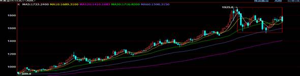 ????A股上行空間到底有多大 ????本周滬市連續(xù)七周收出陽(yáng)線,表明了市場(chǎng)做多意愿的堅(jiān)決,截止本周,今年漲幅11.88%,深成指漲幅更達(dá)15.45%,A股市場(chǎng)已提前踏入春天。 ????本編從技術(shù)角度分析認(rèn)為,滬指月線指標(biāo)中的動(dòng)態(tài)KDJ(隨機(jī)指標(biāo))自滬指六千余點(diǎn)下行以來(lái)的第三次出現(xiàn)低位金叉形態(tài)(前兩次均出現(xiàn)較大幅度的反彈),結(jié)合周DMI(趨勢(shì)指標(biāo))PDI線即將突破MDI線,顯示有新多主力進(jìn)場(chǎng),提示了中期買進(jìn)信號(hào),就周線BOLL(布林指標(biāo))看;本次反彈可達(dá)2560附近,這也對(duì)A股繼續(xù)向好走勢(shì),提供了技術(shù)面支持。就短線而言,股指經(jīng)過(guò)連續(xù)上漲,短期指標(biāo)出現(xiàn)超買趨勢(shì),強(qiáng)勢(shì)格局中的調(diào)整在所難免,對(duì)于普通投資者來(lái)說(shuō),股指仍處在底部區(qū)域的反復(fù)震蕩筑底階段,績(jī)優(yōu)板塊整體估值水平仍就偏低,投資者可對(duì)此板塊中的個(gè)股深度挖掘,大盤在經(jīng)濟(jì)面趨于改善(2月PMI越過(guò)枯榮線)、流動(dòng)性逐步充裕(降準(zhǔn)預(yù)期不減)的共同作用下,,回穩(wěn)日趨明顯,長(zhǎng)期看,隨著流通市值的增大,經(jīng)濟(jì)的回暖,市場(chǎng)不會(huì)永遠(yuǎn)在2000余點(diǎn)徘徊,在一個(gè)價(jià)值投資區(qū)域,在一個(gè)初春耕耘的時(shí)節(jié),提前布局,等待收獲季節(jié)的來(lái)臨。 ????黃金周評(píng) ????今晨(3日)紐約商業(yè)交易所4月份交割的黃金期貨價(jià)格下跌12.40美元,報(bào)收于每盎司1709.80美元,跌幅為0.7%。本周,該合約大跌3.7%。 ????技術(shù)面:K線收?qǐng)?bào)小陰線,短期均線空頭格局。指標(biāo)看;BOLL線口持穩(wěn),金價(jià)遇下軌支撐上行走勢(shì),MACD綠柱體繼續(xù),日KDJ死叉下行,指標(biāo)提示空頭主動(dòng)。 ????持倉(cāng):Wind資訊統(tǒng)計(jì)數(shù)據(jù)顯示,截至周三(2月29日),全球最大黃金上市交易基金(ETF)-SPDR Gold Trust黃金持倉(cāng)量為4159.2971萬(wàn)盎司或1293.68噸,較上一交易日增加291500盎司或0.70%,當(dāng)月累計(jì)上漲1.78%。 ????總體看:當(dāng)周期金價(jià)格大幅下挫,最低點(diǎn)一度達(dá)到1688美元至10周均線處獲得支撐,技術(shù)面,短期均線系統(tǒng)空頭趨勢(shì),空單主導(dǎo)市場(chǎng),從中期角度看,大箱體震蕩格局日趨明顯,短期較強(qiáng)支撐位在60日均線及10周均線的1680美元至1687美元之間,長(zhǎng)期看黃金作為抵御通脹、相對(duì)保值避險(xiǎn)的配置組合來(lái)考慮。 ????紐期金主力合約周K線圖