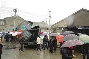 運(yùn)煤氣罐的貨車(chē)已被燒成鐵架,陳大姐的早餐店也遭了殃 金報(bào)熱線66111111報(bào)道 “快跑啊!煤氣瓶要爆炸了!”陳大姐邊跑邊叫,一口氣跑了50米后停下來(lái),嘴里喘著粗氣?!稗Z”!一聲巨響,陳大姐腿一抖,本能地又跑了十幾米。剛想停下來(lái)看看后面情況,緊接著又是一聲巨響,嚇得陳大姐再次往前跑了幾十米。 昨天早晨5點(diǎn)40分左右,鎮(zhèn)海雄鎮(zhèn)路環(huán)保局邊上一拆遷安置小區(qū)內(nèi),一輛裝載30多瓶煤氣瓶的廂式小貨車(chē)路過(guò)早餐店。貨車(chē)中出現(xiàn)煤氣外漏,遇煤爐中的明火后引發(fā)大爆炸,爆炸持續(xù)了20多分鐘。 講述 昨日上午,記者來(lái)到爆炸現(xiàn)場(chǎng)時(shí),火已經(jīng)被撲滅?,F(xiàn)場(chǎng)只剩下貨車(chē)的鐵皮和被炸毀的煤氣瓶,只要是能點(diǎn)燃的零件,全部被燒毀。全封閉的廂式小貨車(chē)車(chē)廂嚴(yán)重變形,車(chē)子幾米外的早餐店也已面目全非。早餐店老板娘陳大姐正收拾著還能用的物品,準(zhǔn)備運(yùn)往別處。 “6聲巨響,躥出10米多高的紅火!我被驚呆了,這完全是戰(zhàn)爭(zhēng)片里才能看到的場(chǎng)面?!毙^(qū)住戶宋先生激動(dòng)地說(shuō), 10米多高的紅火從地面向空中跳躍。貨車(chē)零件四處亂飛,最遠(yuǎn)的飛到了40多米。保險(xiǎn)杠被炸飛到兩米多高。 早餐店陳大姐:伴著爆炸聲狂跑 在爆炸的貨車(chē)邊上,是陳大姐的早餐店,昨天早上事發(fā)時(shí),陳大姐和王大姐正在里面準(zhǔn)備早餐,從起火到爆炸,陳大姐看得清清楚楚。 當(dāng)時(shí)我們倆在準(zhǔn)備早餐,生好火的煤爐就放在門(mén)口。這時(shí)一輛貨車(chē)在邊上停下來(lái),司機(jī)下來(lái)說(shuō)是車(chē)內(nèi)煤氣泄漏了,他一打開(kāi)后車(chē)門(mén)后,就能聞到濃濃的煤氣味,當(dāng)時(shí)并沒(méi)有著火。司機(jī)轉(zhuǎn)身看到我門(mén)口的煤爐,就趕忙過(guò)來(lái)。 情急之下他竟然用嘴對(duì)著煤爐火吹,想把火吹滅。前后沒(méi)有半分鐘時(shí)間,車(chē)廂內(nèi)起了火,司機(jī)撒腿就跑。 我馬上大叫了一聲,快跑啊!煤氣瓶要爆炸了!她(王大姐)也跟著跑了出去。 我跑出來(lái)后什么都沒(méi)想,只想著能跑遠(yuǎn)點(diǎn)。跑出大概50米后,我停下來(lái)喘了口氣。心想這地方應(yīng)該安全了吧,就看著大火的方向。 轟!一聲,嚇了我一跳,地都震了,我什么都沒(méi)想,趕緊又跑了十幾米。我想停下來(lái)看看身后情況,這時(shí)火中又是一聲巨響,嚇得我又向前跑了幾十米。 直到跑出百米遠(yuǎn),我才敢停下來(lái),再看時(shí),那車(chē)燒得跟火球一樣。 被驚醒的住戶:衣衫不整忙逃命 早上發(fā)生的這起爆炸,不單單嚇壞了陳大姐,附近有12間窗戶在事故中被擊碎。魏先生就住在爆炸地點(diǎn)十幾米遠(yuǎn)的房子里。 早上5點(diǎn)半,我們一家人還在睡覺(jué),突然就聽(tīng)到一聲巨響。一家三口都被震醒,醒來(lái)后聽(tīng)到”嗤嗤“聲。我覺(jué)得不對(duì)勁,叫上妻子抱著女兒,衣服還沒(méi)來(lái)得及穿,就往外面跑。 當(dāng)時(shí)下著大雨,我們跑到外面,看見(jiàn)鄰居也都穿著睡衣跑出來(lái),還有赤膊的。就在大家跑的過(guò)程中,又是一聲巨響,可大家都不敢回頭看,一直跑到百米開(kāi)外的水塘邊才都停下來(lái)。一個(gè)小孩光腳跑,踩上被擊碎在地的窗戶玻璃,流了一地的血。 我們一排十幾戶人家都聚在一起,大家都沒(méi)來(lái)得及穿衣服,也都沒(méi)有傘,在雨里足足淋了40多分鐘,消防官兵將煤氣瓶運(yùn)走后,才敢回家。 參與救援的一位消防官兵告訴記者,他們趕到時(shí)貨車(chē)正在爆燃,大火躥出10米多高。爆炸現(xiàn)場(chǎng)一片狼藉,大火中不時(shí)飛出爆炸碎片。貨車(chē)后車(chē)門(mén)開(kāi)著,通過(guò)火光可以清楚地看到車(chē)內(nèi)躺著10多個(gè)煤氣瓶,還有幾個(gè)掉在地上。如此高的溫度,隨時(shí)有被引爆的可能。 搶救了一小時(shí)左右,火被澆滅。消防官兵從車(chē)中取出10多個(gè)煤氣瓶,扔到了50米外的荒地里?,F(xiàn)場(chǎng)消防說(shuō),此次事故有10多個(gè)煤氣瓶被引爆,至少出現(xiàn)了6聲巨響,爆炸驚天動(dòng)地。 事故發(fā)生后,在小區(qū)里開(kāi)煤氣代充點(diǎn)的許女士很驚慌,這是一家非法存放點(diǎn)。當(dāng)時(shí)小貨車(chē)上的煤氣瓶就是運(yùn)往她家的,被燒毀的貨車(chē)也是她家的。 許女士說(shuō),車(chē)子租給了別人,每月一千元左右。租車(chē)的人叫什么名字她也不知道,早上一直打這個(gè)人電話都打不通。許女士說(shuō),自己換煤氣,一瓶賺個(gè)5元錢(qián)。對(duì)此村里一位村干部說(shuō),這些人的煤氣來(lái)歷不明,應(yīng)該賺不少。 昨日下午,記者按許女士給的號(hào)碼撥打后,電話語(yǔ)音提示說(shuō),所撥的號(hào)碼設(shè)置的呼叫轉(zhuǎn)移是空號(hào)。 進(jìn)展 司機(jī)涉嫌偷灌煤氣,事后跑了 是什么原因?qū)е逻@次事故發(fā)生?現(xiàn)場(chǎng)執(zhí)勤的鎮(zhèn)海城管蛟川中隊(duì)副隊(duì)長(zhǎng)張國(guó)民說(shuō)了詳情。 車(chē)子燒著后駕駛員就跑了,整個(gè)爆炸過(guò)程沒(méi)有造成人員傷亡。 這輛小貨車(chē)涉嫌偷灌煤氣,從現(xiàn)場(chǎng)的貨車(chē)殘骸中,看到了偷灌煤氣裝置的零件。在一個(gè)氧氣瓶上焊滿了一排排大拇指粗細(xì)