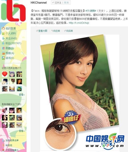 HKChannel于2012年3月6日20點07分發(fā)布的這條微博,附上了香港《FACE周刊》第250期的詳細報道全文,及文頌嫻接受整形前后的對比照片。