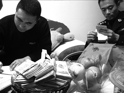 民警在“老婦女”劉某家起獲近20萬元現(xiàn)金。