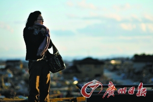 地震后,日本災(zāi)民在廢墟上遙望自己的家園(資料圖片)