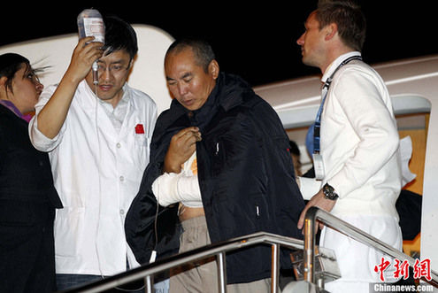 3月10日20點40分,在剛果(布)爆炸事件中受傷的31名中國工人在中方醫(yī)療人員和中國政府聯(lián)合工作組部分成員陪護(hù)下,乘坐包機抵達(dá)北京首都國際機場。當(dāng)?shù)貢r間3月4日,剛果(布)首都布拉柴維爾一彈藥庫發(fā)生爆炸事故,據(jù)剛果(布)官方公布的情況,爆炸事件目前已造成200人遇難,2000多人受傷。
