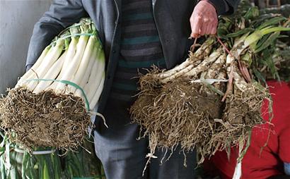 ![]() ????[新聞提示] ????“你是來倒騰大蔥的吧?”當(dāng)記者坐著當(dāng)?shù)厮追Q“蹦蹦的”的簡易三輪車,前往全國最大的大蔥集散市場之一——平度市南村鎮(zhèn)洪蘭中村大蔥市場時,開車大爺?shù)囊痪湓捵層浾叻路鹇劦搅丝諝庵写笫[獨(dú)有的嗆人味。 ????為了探究大蔥漲價的真實(shí)原因,前昨兩日,記者趕赴青島周邊郊市,在這里,記者看到了一片片泛著嫩黃的小蔥,還有一車車運(yùn)往全國各地的凈蔥;看到了蔥商臉上的笑、菜農(nóng)臉上的愁、村支書臉上的無奈,還有蔬菜價格異動的“潛規(guī)則”。 ????種蔥農(nóng)民: “大部分人改種其他蔬菜” ????標(biāo)題上這句話出自平度市張莊鎮(zhèn)東梁家村村民梁程運(yùn)之口。 ????說起大蔥來,梁程運(yùn)難以掩飾自己心里的別扭?!叭ツ昕砂盐覀兎N蔥的傷著了?!绷撼踢\(yùn)指著田邊的河溝說,去年四五月份的時候,這條不窄的河溝里,全都是菜農(nóng)丟棄的大蔥,一堆一堆的跟小山似的?!叭ツ甏笫[最便宜的時候幾分錢一斤,賣跟不賣沒什么兩樣的?!绷撼踢\(yùn)說,去年他只賣出了一畝地的大蔥,剩下兩畝地里的近兩萬斤大蔥全部翻到地里做了“有機(jī)肥料”?!爸饕浅鍪[還要花人工,不值當(dāng)?!绷撼踢\(yùn)去年平均一畝地虧了600塊錢,用他的話說,“我們種菜的就這個樣,每年種菜都跟買彩票似的,種對了就多賺點(diǎn),種錯了就賠點(diǎn)錢,各家有各家的想法,誰也說不準(zhǔn)明年市場一定怎么樣?!?/p> ????“去年種大蔥的全都賠錢了,所以今年盡管合作社一再鼓勵種大蔥,大部分人還是改種了其他蔬菜,種大蔥的田地面積差不多縮水一半,我是因?yàn)槿ツ曩I的種子還剩不少,也想著去年大蔥便宜,今年肯定能漲上去,所以就繼續(xù)種大蔥?!绷撼踢\(yùn)說,從春節(jié)之后大蔥價格一直在漲,他心里也是很高興,不少今年沒種蔥的同鄉(xiāng)碰見他時,總會加上一句:“今年發(fā)財了??!”可梁程運(yùn)說,他其實(shí)笑得挺勉強(qiáng)的。“現(xiàn)在我地里的大蔥高的也就60厘米,根本沒法出蔥,現(xiàn)在是干眼饞?!绷撼踢\(yùn)說,青島的大蔥一般要到清明至 “五一”期間才能長到120厘米高左右,這個時候才可以出蔥??蓪τ趦蓚€月之后的大蔥價格,誰心里也沒有底。梁程運(yùn)說,現(xiàn)在村里不少人為了趁著高價出蔥,把地里一些沒長成的小蔥硬拔出來,可因?yàn)橘|(zhì)量不行,價格也上不去。 ????蔥賤傷農(nóng)。青島平度地區(qū)一直是國內(nèi)有名的大蔥產(chǎn)地,去年的一場“賤價風(fēng)波”讓大蔥種植面積明顯縮減。如平度蘭底鎮(zhèn),今年大蔥種植面積減少了三成多。 ????在蔬菜價格波動幅度越來越大的當(dāng)下,島城菜農(nóng)的日子可以說是越來越不好過了,物價通脹、游資炒作、供需異變,在菜農(nóng)面前,這些都成為了無法預(yù)測的不可抗力。 ????蔬菜經(jīng)紀(jì)人: “蔥上的泥一斤也要兩塊多” ????3月8日中午12點(diǎn)多,記者來到平度市南村鎮(zhèn)洪蘭中村大蔥市場,雙盛蔬菜公司總經(jīng)理王利鳴正忙著籌備貨源,下午要發(fā)一車大蔥到呼和浩特。 ????洪蘭是平度市有名的蔬菜大村,兩千多戶人,幾乎家家都種大蔥,如今已經(jīng)成為了全國大蔥市場的重要集散地。說起今年大蔥的價格,王利鳴說,之所以短時間內(nèi)出現(xiàn)異常大漲,主要是因?yàn)楫a(chǎn)地收購價波動劇烈?!艾F(xiàn)在青島人吃的蔥,大部分都是從上海、杭州運(yùn)過來的?!蓖趵Q介紹說,江浙一帶的水土和氣候非常適合種植大蔥,所以這一帶已經(jīng)成為了全國主要的大蔥產(chǎn)區(qū)?!耙郧按笫[傳統(tǒng)產(chǎn)區(qū),比如壽光、平度和章丘,這幾年大蔥種植面積都在減少,而這個時節(jié),市場上的大蔥九成都是江浙一帶產(chǎn)的?!蓖趵Q說。 ????“上海那邊已經(jīng)連下了四五天雨了,我們這邊也有點(diǎn)愁沒蔥賣了?!蓖趵Q說,南方大蔥出貨量大減,他要發(fā)往呼和浩特的大蔥,還是他借來的。 ????說話之間,記者走進(jìn)了王利鳴的蔬菜加工車間,剛落腳就踩了一鞋底的爛泥?!澳憧蓜e小瞧這些爛泥,從上海運(yùn)到青島,一斤也要賣兩塊多錢呢?!苯舆^王利鳴手里的大蔥時,記者差點(diǎn)沒有接住,看上去頂多10多斤的大蔥卻有20多斤重?!澳憧催@一根蔥就帶一大團(tuán)泥,光蔥根上的這塊泥就差不多跟蔥一樣重了?!蓖趵Q說,這并非是收蔥的人從中作祟,而是最近幾天天氣不好,當(dāng)?shù)爻鍪[時難免要帶塊泥,本來這樣的蔥誰都不愿意收,但現(xiàn)在大蔥緊張,這樣帶泥蔥也賣到了兩塊多錢?!艾F(xiàn)在一般是50斤毛蔥出差不多30斤凈蔥?!蓖趵Q說,折損率高也是今年大蔥價格上漲的重要原因?!拔疫@49噸大蔥是剛從上海拉來的,當(dāng)?shù)匾唤锸[收購價已經(jīng)漲到2.14元了,一車路上的運(yùn)費(fèi)就要3000多塊錢,來到我這里還要去泥去皮,一斤凈蔥的成本已經(jīng)是2.4元,我往青島送蔥的價格是一斤2.6元。”王利鳴說。 ????“去年這個時候,南方拉來的大蔥,一車不管是30噸還是40噸,都是2000塊錢,連運(yùn)費(fèi)都掙不出來?!蓖趵Q說,當(dāng)時不少人當(dāng)著他的面痛哭流涕。而對于今年大蔥價格暴漲,王利鳴也沒有感覺有什么異常的地方,“現(xiàn)在市場都放開了,價格都是市場定的。”王利鳴說,等過了清明,平度和章丘的大蔥上市之后,大蔥價格肯定大幅下跌?!暗綍r候你再來看看,肯定還有哭鼻子的?!?/p> ??