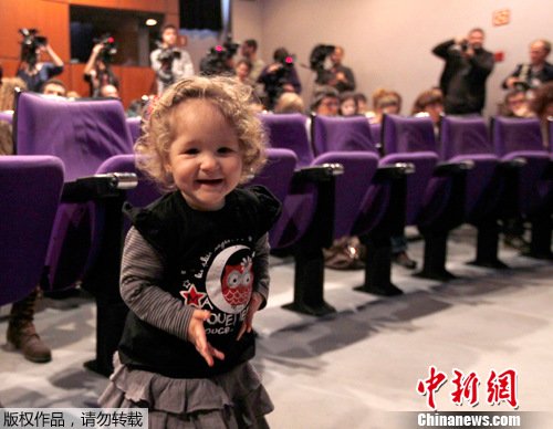 圖為16個(gè)月大的女孩阿萊斯和父母在一起。