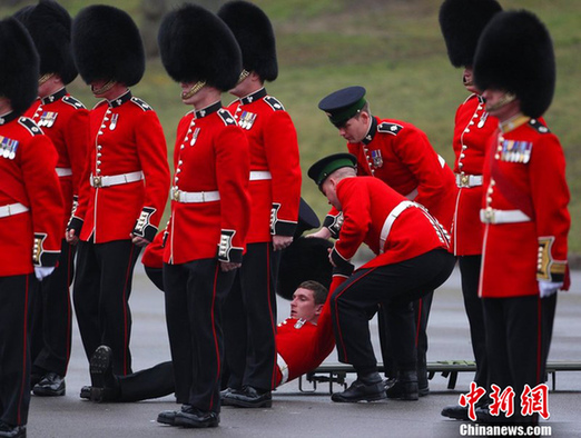 3月17日是為了紀(jì)念愛爾蘭守護(hù)神圣帕特里克而舉辦的圣帕特里克節(jié)(St. Patrick's Day),英凱特王妃在當(dāng)天前往英格蘭南部奧德索軍營參觀,凱特還將象征“三位一體”的酢漿草致贈(zèng)給愛爾蘭衛(wèi)隊(duì)。在等待王妃到來的時(shí)候,愛爾蘭衛(wèi)隊(duì)的一名士兵突然暈倒。
