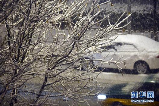 3月18日凌晨雪景。 3月17日深夜至18日凌晨,北京市區(qū)突迎降雪,京城大地一派銀裝素裹。