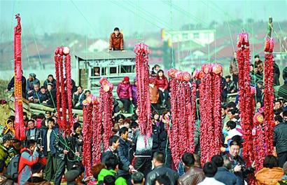 昨天上午,在黃龍莊,記者看到,30余頭披紅掛彩的黑毛公豬一字排開,紅毛公雞、大個鱸魚排在紅漆桌上,供桌上還擺滿面塑圣蟲、壽桃、魚、各類糖果、點心等供品。二萬余名游人了這個小漁村。