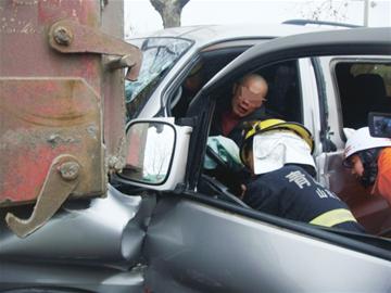 ![]() ????昨天上午,城陽南流路流亭派出所附近發(fā)生一起交通事故,一輛面包車與一輛大貨車追尾。事故發(fā)生后,面包車司機口吐鮮血,雙腿被方向盤卡住,流亭消防中隊5分鐘救出被困司機。記者了解到,受傷司機只是雙腿受傷,沒有生命危險。 ????追尾面包還在“冒煙” ????“兩車追尾,有人被困車內。面包車還在冒煙,有燃燒的危險?!弊蛱焐衔?時,流亭消防中隊接報警稱。接警后,考慮到事態(tài)的嚴重性,流亭中隊迅速出動1部多功能搶險救援車和一部泡沫水罐車,16名消防戰(zhàn)士火速趕赴事故現場。 ????現場,一輛面包車車頭死死卡在大貨車尾部,車頭損毀嚴重,地上到處散落著破碎的車輛零部件,面包車方向盤上的安全氣囊已經打開。面包車內,司機雙腿被方向盤卡住,無法動彈,表情非常痛苦。 ????消防人員檢查發(fā)現,面包車并沒有報警人稱的冒煙現象。 ????變形車內救出司機 ????確定車輛沒有燃燒危險后,指揮員迅速下達救援命令。消防人員先用電動液壓剪切鉗將變形的車門打開,然后用液壓撐桿將駕駛室空間擴大,5分鐘后,被困司機被成功解救出。此時,面包車駕駛員的親友已趕到現場,迅速將他送到醫(yī)院救治。 ????目擊者稱,事發(fā)時,大貨車停在路上,面包車從后面撞上了大貨車。(記者 王濤 通訊員 蘇會凱) |
