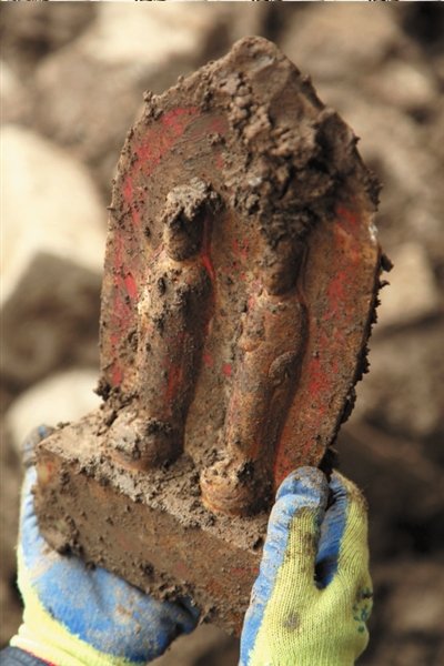 本次出土的佛造像,除了部分無色外,很多都色彩艷麗。如何保護佛造像顏色成了一大難題。