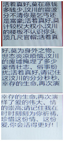 王明先戴上老花鏡,湊近了手機(jī),只見短信中寫道:“活著真好,莫在意錢多錢少,汶川的震波分不清你是乞丐還是富豪;活著真好,莫計較權(quán)大權(quán)小,汶川的樓板不認(rèn)識你頭頂幾尺官帽;活著真好,莫為身外之物、世態(tài)炎涼煩惱,汶川的廢墟掩埋了多少豪情壯志、俗事紛擾;活著真好,請記住這汶川的分分秒秒,幸存的生命,再次演繹了愛的偉大、情的崇高;請記住我在時時刻刻為你祈禱,珍惜這份情、這份愛,你會活得更好……”
