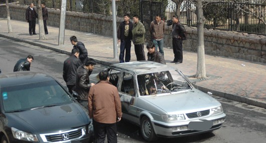 ![]() 上午在新沂路口一輛轎車發(fā)生爆炸自燃 ????今天上午九時許,在青島市南區(qū)新沂路,一輛正在行駛中的銀色捷達(dá)轎車發(fā)生爆炸后自燃,車內(nèi)男子當(dāng)場身亡。車輛爆炸燃燒中多位市民試圖營救,但車門反鎖,男子失去自救能力,救助最終無果。隨后趕到的消防人員撲滅了大火,警方封鎖現(xiàn)場,并進(jìn)行事故勘查。目前事件正在進(jìn)一步調(diào)查中。 ????爆料:捷達(dá)行駛中突爆炸 司機(jī)當(dāng)場死亡 ????“一輛小轎車在道路中間起火了,里面還坐著個人?!苯裉焐衔缇劈c(diǎn)市民張先生爆料稱,隨后記者趕赴現(xiàn)場發(fā)現(xiàn),在市南區(qū)新沂路與新沂一路交叉路口南側(cè),一輛銀色的捷達(dá)轎車被大火燒成了空架子,地面上布滿了破碎的玻璃和車子碎片。身亡的司機(jī)還端正的倚座在駕駛座位上面,衣服已經(jīng)被燒光露出皮肉,面部已經(jīng)嚴(yán)重?zé)齻?,幾乎無法辨認(rèn)。現(xiàn)場聚集了大批的圍觀群眾,數(shù)十名警務(wù)人員將事故現(xiàn)場封閉,并對燃燒車輛進(jìn)行查看。 ????“上午九點(diǎn)左右,我在屋子里面突然聽到一聲巨響,出門看到一輛小轎車的前擋風(fēng)玻璃被炸掉了,隨后主駕駛室里面就開始燃起了火,車子爆炸后,又緩慢向前滑行了20幾米才停下來。然后車子里面就燃起了火球?!痹谛乱事房诮?jīng)營蔬菜生意的張先生稱。 ????目擊:車子爆炸后司機(jī)未掙扎自救 市民營救未果 ????“我看到車子起火后,立刻跑上前去,發(fā)現(xiàn)一名男子坐在駕駛座位上,不出聲,我就立刻拉車門,想把駕駛員拉出來,但是車門反鎖。因火勢太大,濃煙嗆人,無法接近,只能放棄?!睆埾壬硎?,車子發(fā)生爆炸后,他沒有聽到駕駛員呼喊求救,在他試圖拉車門營救時,駕駛員也未掙扎自救。 ????車輛起火后,路旁一家洗衣店的工人李先生拿出店內(nèi)的小型滅火器,試圖撲滅車子大火,“但是火勢太大了,不起作用?!崩钕壬Q。 ????進(jìn)展:警方封鎖現(xiàn)場勘驗(yàn)調(diào)查 ????事故現(xiàn)場,一輛黑色的私家小轎車,因靠近事故車輛,車窗、反光鏡被煙火烤的扭曲變形。“車子爆炸時,路上沒有行人,所以沒看到其他人受傷?!睆埾壬硎尽?/p> ????據(jù)了解,隨后趕到的消防救援人員將火撲滅,然后離開了現(xiàn)場,市南公安局警員對現(xiàn)場進(jìn)行了封鎖勘查,目前事件正在進(jìn)一部調(diào)查中。 |