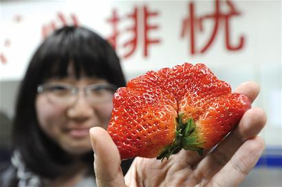 ![]() ????早春時節(jié),鮮紅的草莓成為市民嘗鮮的首選。但不少細(xì)心的市民發(fā)現(xiàn),今年市場上叫賣的草莓長得奇形怪狀,昨日市民于女士就在市場上買到一個個頭超大的扇形草莓。面對這些奇形怪狀的草莓,許多市民質(zhì)疑其是否添加了膨大劑,而這些質(zhì)疑得到了相關(guān)專家的肯定。 ????扇形草莓市民心驚 ????“你看看這個,我還是頭一次見到這個形狀的草莓?!庇谂肯蛴浾哒故咀约嘿I到的草莓。與一般草莓相比,這個草莓在外形上著實怪異,不僅個頭要比一般草莓大一倍,形狀也不是草莓的形狀,而是呈一個不規(guī)則的扇形。于女士表示這個草莓是她在四方區(qū)人民路上的一家農(nóng)貿(mào)市場購買的,當(dāng)時也沒太注意,回家吃的時候才發(fā)現(xiàn)這個“怪東西”,家里人都不敢吃。 ????“草莓哪有這個形狀的啊,肯定不知道加了什么東西才長成這樣的。”于女士懷疑,這個草莓有可能是添加了膨大劑一類的東西。 ????怪形草莓少吃為妙 ????“如果草莓的個頭和形狀與其它草莓相比差別較大,并且咬開后內(nèi)部有中空,吃起來寡淡無味,那么這種草莓就有可能是使用了膨大劑,食用這種草莓對人的身體無益?!鼻鄭u農(nóng)業(yè)大學(xué)植物專家宋教授同時也表示,并非大的草莓就是添加了膨大劑的,現(xiàn)在草莓的品種在不斷更新,個頭大的草莓也可能是正常的,只是一些奇形怪狀的草莓市民盡量不要食用。 (記者 王曉先 于滈 攝影報道) |