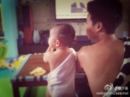 近日,蔡少芬又大秀家中的倆寶,一個是老公張晉,一個是女兒楚兒。蔡少芬微博上曝光了兩個人的裸背照,父女倆超有模特范。畫面非常有喜感,網(wǎng)友表示真是“歡樂的一家”。