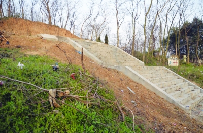 古墓區(qū)中冒出一座規(guī)模不小的新墓,圖為已建成的水泥臺(tái)階。 (張凌發(fā) 攝)
