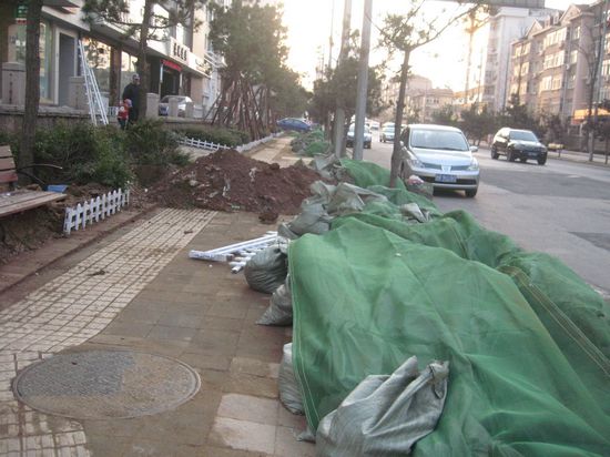 青島新聞網(wǎng)3月28日訊 近來,不斷有市民抱怨:青島的道路越來越難走,交通擁堵問題已經(jīng)是老生常談,現(xiàn)在連走人行道都成了問題。記者按照網(wǎng)友提供的情況,在市區(qū)內(nèi)進行了一番探訪。 市政施工熱火朝天,居民行路“以身犯險” 3月27日下午,記者首先來到香港中路沿線,這條東西向主干道承載著城市交通的大量車流,市政部門正在道路兩側(cè)進行綠化,路面本就不寬的人行道上散布著挖開的泥土、磚石、綠色的布和編織袋,現(xiàn)場人員正在施工,原本栽種樹木的位置被挖出了一米見方的坑,每隔數(shù)米就有一個。 在與現(xiàn)場市民交談中,記者了解到,這項工程開工時間不短,約有數(shù)周,分段進行的工程自西向東推進,已經(jīng)接近尾聲,施工中,人行道上土石遍地,很難下腳,行人只好在車行道上走,車輛自香港中路與彰化路口西向東方向是個大下坡,車速較快,存在很大危險性。 隨后記者循跡前往彰化路與香港中路交界處,果然,這邊的施工基本結(jié)束,但挖開的坑沒有填上,沿彰化路向東海路方向走,這樣的坑有數(shù)十個,有的坑內(nèi)還有樹根和石塊,周邊密布療養(yǎng)院和干休所,夜間行路的安全隱患十分嚴重。 東海路上的情況基本與香港中路相同,施工隊伍忙得熱火朝天,東海路沿線車站改造和綠化工程正在進行,藍色的鋼板隔開車站內(nèi)側(cè)的施工隊伍和外界的車流,但也給行人出了難題:要么冒險走鋼板外側(cè),要么橫穿過馬路到對面走,面對下午飛馳的車流,這兩種都不是安全的選擇。 |