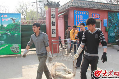 備受關(guān)注的“狼”被帶離公園 溫順接受摸頭 山東棗莊“5歲母狼”被帶離“驗(yàn)身” 棗莊滕州抓到的第二只“母狼”,究竟是野狼還是哈士奇,引發(fā)網(wǎng)友熱議。27日下午,記者在滕州進(jìn)行采訪,下午3時許,滕州市林業(yè)局森林公安科將這只飽受爭議的“母狼”從滕州市動物園帶走進(jìn)行鑒定,負(fù)責(zé)人員告訴記者,鑒定結(jié)果出來后將通過滕州市委宣傳部向社會公布。滕州森林公安部門負(fù)責(zé)人向記者表示,目前國家林業(yè)局委托的專家正在對該“疑似狼”的動物進(jìn)行技術(shù)鑒定,現(xiàn)在還沒有結(jié)果,最終官方的結(jié)論有望在一周后向社會公布。 在這只“母狼”被帶走前,記者與其進(jìn)行了接觸。記者發(fā)現(xiàn),這只“母狼”不僅能聽懂記者喚狗的聲音,而且溫順地走到記者的身邊,并允許記者用手撫摸其頭部。圍觀的大部分市民都稱與旁邊籠子里的狼相比,這只“母狼”體型明顯偏小。 一位對寵物狗有研究的市民劉先生經(jīng)過細(xì)致觀察后表示,從外表看,這是一只哈士奇寵物狗。劉先生解釋說,哈士奇狗有一個明顯的特征,其頭上有“三把火”(三個條狀的毛色),而這只“母狼”頭上有三條白色的毛色完全符合這一特征。而且與狼相比,除體型偏小外,這只“母狼”毛色發(fā)紅,而滕州當(dāng)?shù)匾吧堑拿且浴盎摇睘橹鞯谋Wo(hù)色。 同時,記者還聽到,在被帶走的過程中,動物園的工作人員準(zhǔn)備將這只“母狼”裝入籠中時,這只“母狼”竟發(fā)出了類似狗的叫聲。 另外,對于這只“母狼”將被帶往何處鑒定,如果鑒定后確為哈士奇,這只寵物狗的又將被如何處理,前來帶走“母狼”的森林公安人員拒絕接受采訪。同時,記者又試圖聯(lián)系滕州市林業(yè)局負(fù)責(zé)人,這位負(fù)責(zé)人的手機(jī)號碼也變成了空號,該局辦公室的工作人員提供了森林公安負(fù)責(zé)人張科長的電話,但張科長表示不方便透露情況,讓記者聯(lián)系宣傳部,而宣傳部門則讓找滕州市林業(yè)局等相關(guān)部門。 在幾天前,還熱衷“打狼”宣傳的滕州公安和林業(yè)局等相關(guān)部門,在出現(xiàn)“狼還是狗”的爭議后,卻選擇集體沉默,這成為包括央視等眾多媒體記者采訪過程中的共同感受。 據(jù)此前報道,26日,野生動物學(xué)家馬金生親臨棗莊滕州動物園現(xiàn)場,對遭到質(zhì)疑的“5歲母狼”進(jìn)行了現(xiàn)場鑒定,經(jīng)鑒定判斷,這只所謂的“野狼”實(shí)際上確實(shí)為哈士奇寵物犬。而之前該犬是以“母狼”的身份被抓獲的。 (記者 王磊、韋輝) |