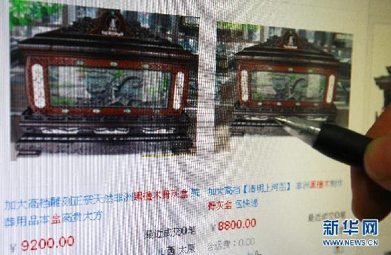 在淘寶網(wǎng)上,一個黑檀木骨灰盒的標價高達9200元(3月30日攝)。 “100多元成本的骨灰盒標價為2080元,利潤超過販毒”“殯儀館里幾乎見不到平價骨灰盒,不能這樣發(fā)‘死人財’吧?”…… 臨近清明節(jié),網(wǎng)絡(luò)上有關(guān)揭露殯葬暴利、尤其是骨灰盒暴利的網(wǎng)帖隨處可見。新華社“中國網(wǎng)事”記者針對網(wǎng)民詬病最多的“天價骨灰盒”問題進行了調(diào)查,解開了一只出廠價數(shù)百元的普通骨灰盒變身為數(shù)萬元的“奢侈品”的“天價謎團”(新華社記者 裴鑫 攝)