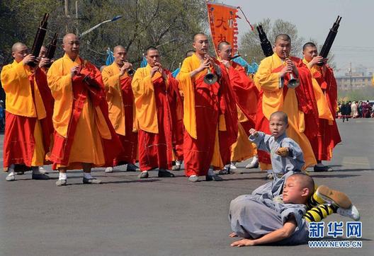4月1日,開封大興國寺梵樂團的樂手和小武僧在巡游隊伍中為游客和市民表演。當(dāng)日,開封市舉行了“清明踏春大巡游”活動。上千名演員和游客、市民們一道,身著宋代服飾,巡游在市內(nèi)的大街上。