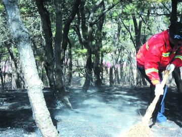 ????昨日上午10時許,家住福州北路櫻花小鎮(zhèn)附近的居民發(fā)現(xiàn),架子山北麓突然冒起了火苗,濃煙飄起8米高。浮山新區(qū)街道辦、浮山新區(qū)城管中隊、浮山管理處的工作人員帶著滅火器、掃帚、鐵鏟趕到現(xiàn)場,和消防官兵一起,經(jīng)過近一個小時地撲救,終于將火撲滅。居民反映,極有可能是有人在山坡的墳頭燒紙祭奠,火星被風(fēng)吹到干燥的草坪上,引燃了1500多平方米的山坡。 ????記者從浮山香苑北門進入,經(jīng)過半個多小時的攀爬,終于在青島海川商務(wù)專修學(xué)院東側(cè)的山坡上找到了起火地點。 100多米長、10余米寬的山坡上還籠罩在一片淡淡的煙霧中,山脊上一條小道兩側(cè),近1500平方米草地被燒黑。20多名身著橘紅色工作服的護林隊員手握鏟子檢查草地上未滅的火星。 “大火基本上撲滅了,現(xiàn)在我們要看是不是還有火星。 ”浮山新區(qū)街道辦工作人員介紹。 ????工作人員告訴記者,起火點在東面的一處墳頭附近,引發(fā)山火的人見起火早就溜了。記者稍后來到了起火點附近,山坡上有近300多個墳頭,就在離冒煙的山坡不到20米遠的地方,還有幾位市民在墳頭前燒紙祭奠。 ????相關(guān)新聞 ????南山公園山坡起火 ????前晚8時30分,市民張先生撥打晚報熱線反映,位于鞍山二路的南山公園東北角的山坡上冒起大火。兩輛消防車趕到現(xiàn)場后,10余名消防戰(zhàn)士架起近百米長的消防水帶沖上了山坡,經(jīng)過30分鐘的奮戰(zhàn),將火撲滅。附近不少居民懷疑,很可能是有人在山上祭奠時遺留下的火星引燃了大火。也有市民表示,很可能是有人在散步時扔下的煙頭引燃了草皮。目前,起火原因尚在進一步調(diào)查之中。 ????七成森林火災(zāi)由上墳燒紙引起 ????七成森林山火由上墳燒紙引起,而往年七成火災(zāi)發(fā)生在這一時間段。這是市林業(yè)局副局長張義秀昨天做客“在線問政”時透露的。張義秀表示,清明節(jié)嚴防帶火種入山林。我市森林火險區(qū)劃分為三級,網(wǎng)談中發(fā)布了區(qū)域圖。 ????清明期間,風(fēng)大物燥,林內(nèi)草木干枯,正處于森林高火險期,森林防火形勢十分嚴峻。張義秀呼吁市民,在清明節(jié)期間要文明祭奠,避免攜帶火種進山,更不能進行上墳燒紙、燒香燭、燃放鞭炮等林內(nèi)用火行為,確實有需要焚燒的物品,在各墓地集中的地方,都建有集中焚燒池,全部進行集中焚燒,并加強看護,確保人走火滅,防止跑火失火。 清明期間,全市各級各部門將嚴防山火,對全部森林火險區(qū)域嚴密監(jiān)控?!霸诟鬟M山路口設(shè)崗設(shè)哨,加強檢查和宣傳,嚴禁將火種帶入山林。 ”張義秀說,一旦發(fā)現(xiàn)有違規(guī)用火的市民,要立即制止,一旦引起森林火災(zāi)造成較大損失構(gòu)成犯罪的,還要依法追究刑事責(zé)任。 |